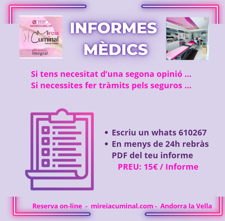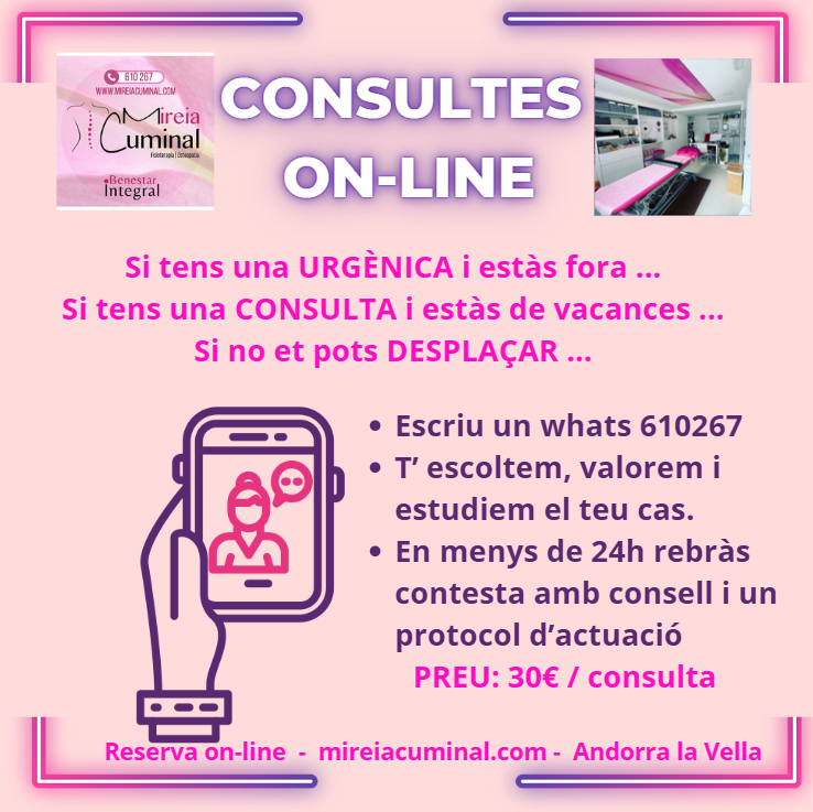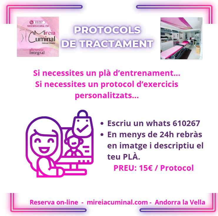 Pots contactar amb la secretària virtual per whatssap: (+376) 610 267 o bé per correu a mireiacuminalfisio@gmail.com